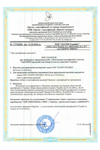 Сертификаты на домкраты пневматические ДП-2 DPA-2C 2,8т "AIRKRAFT"